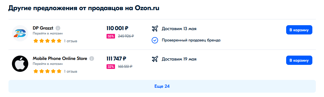 Вариант №2: “Предложения от других продавцов” внутри карточки товара