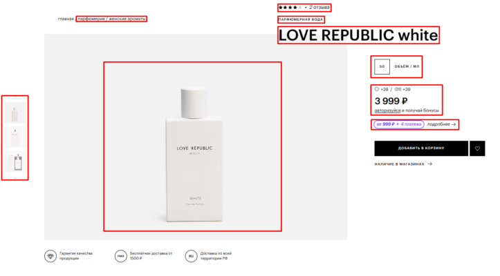 Карточки товаров на Gold Apple содержат подробные описания и характеристики, что делает их хорошим источником продуктовых данных.